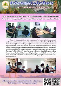 หน่วยงานสังกัดกระทรวงแรงงานจังหวัดตาก บูรณาการกับทีมสหวิชาชีพเข้าร่วมสัมภาษณ์คัดแยกผู้เสียหายที่อาจจะเข้าข่ายการค้ามนุษย์และผู้เสียหายจากการบังคับใช้แรงงานหรือบริการ ผ่านระบบ Zoom Meeting