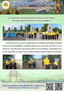 แรงงานจังหวัดตาก มอบหมายเจ้าหน้าที่ เข้าร่วมกิจกรรม “โครงการจิตอาสาทำความสะอาดบริเวณสถานที่ราชการ (ศาลากลางจังหวัดตาก)”