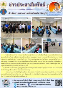 นางประไพพรรณ ลุ่มจันทร์ แรงงานจังหวัดปราจีนบุรี มอบหมายเจ้าหน้าที่สำนักงานแรงงานจังหวัดปราจีนบุรี ลงพื้นที่ตรวจสถานประกอบกิจการ โดยบูรณาการร่วมกับ คณะสหวิชาชีพ หน่วยร่วมตรวจ ตรวจสอบการบังคับใช้แรงงานทั้งแรงงานไทย, แรงงานต่างด้าว, ตรวจสอบผู้หลบหนีเข้าเมืองและความเสี่ยงในการกระทำความผิดฐานค้ามนุษย์ด้านแรงงาน, การทำงานของแรงงานต่างด้าว, สิทธิประโยชน์การคุ้มครองตามกฎหมาย เป้าหมายสถานประกอบกิจการกลุ่มเสี่ยง