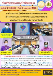 สำนักงานแรงงานจังหวัดสกลนครร่วมประชุมคณะทำงานเพื่อการพิจารณาวาระการประชุมคณะอนุกรรมการส่งเสริมและพัฒนาคุณภาพชีวิตคนพิการประจำจังหวัด ครั้งที่ 2/2565