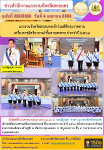 แรงงานจังหวัดสกลนครเข้าร่วมพิธีพระราชทานเครื่องราชอิสริยาภรณ์ ชั้นสายสะพาย ประจำปี 2564