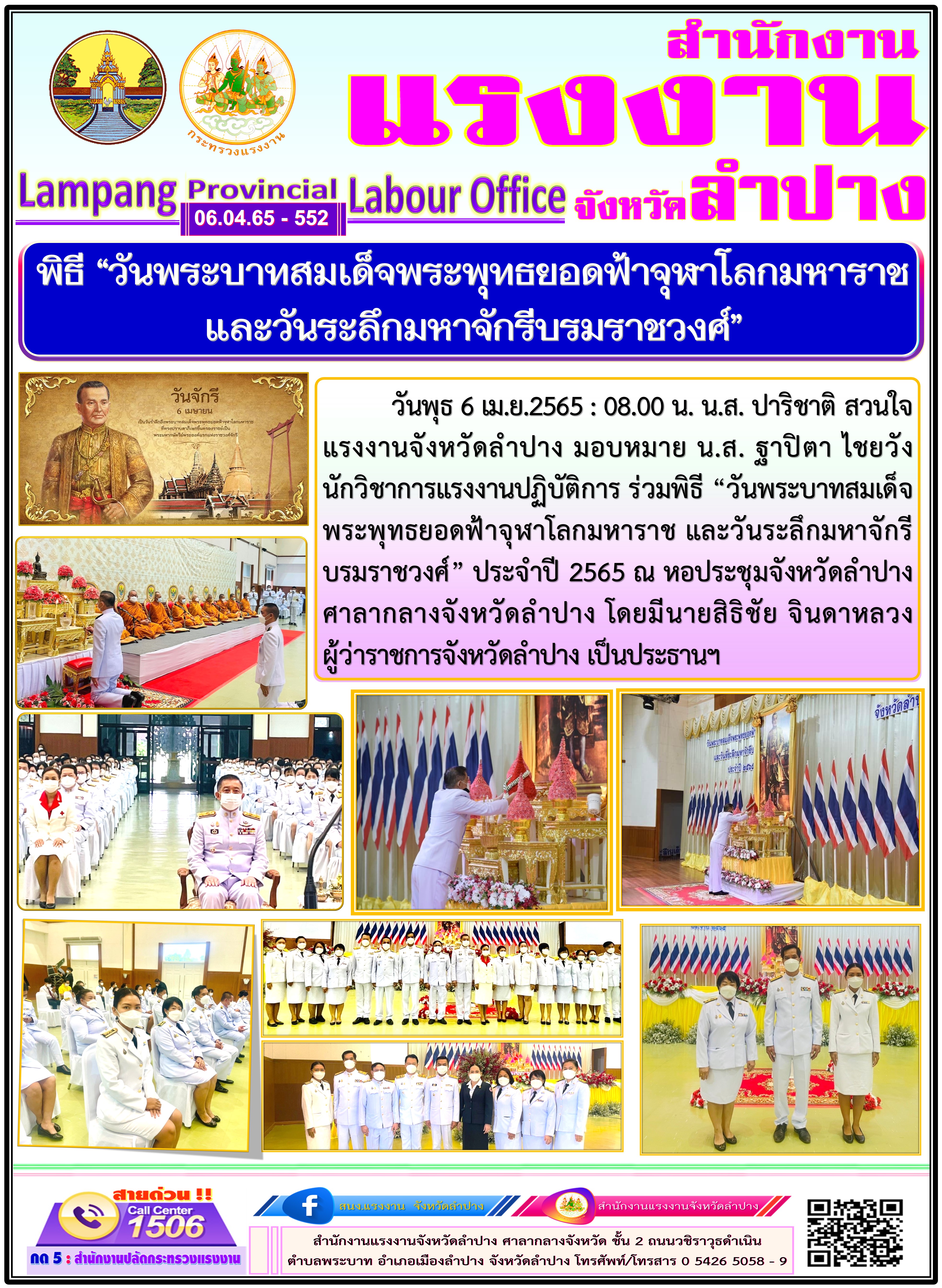 สรจ.ลำปาง ร่วมพิธี “วันพระบาทสมเด็จพระพุทธยอดฟ้าจุฬาโลกมหาราช และวันระลึกมหาจักรีบรมราชวงศ์” ประจำปี 2565