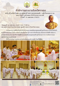 สรจ.ระนอง ร่วมพิธีเนื่องในวันพระบาทสมเด็จพระพุทธยอดฟ้า จุฬาโลกมหาราช และวันที่ระลึกมหาจักรีบรมราชวงศ์ (วันที่ 6 เมษายน 2565)