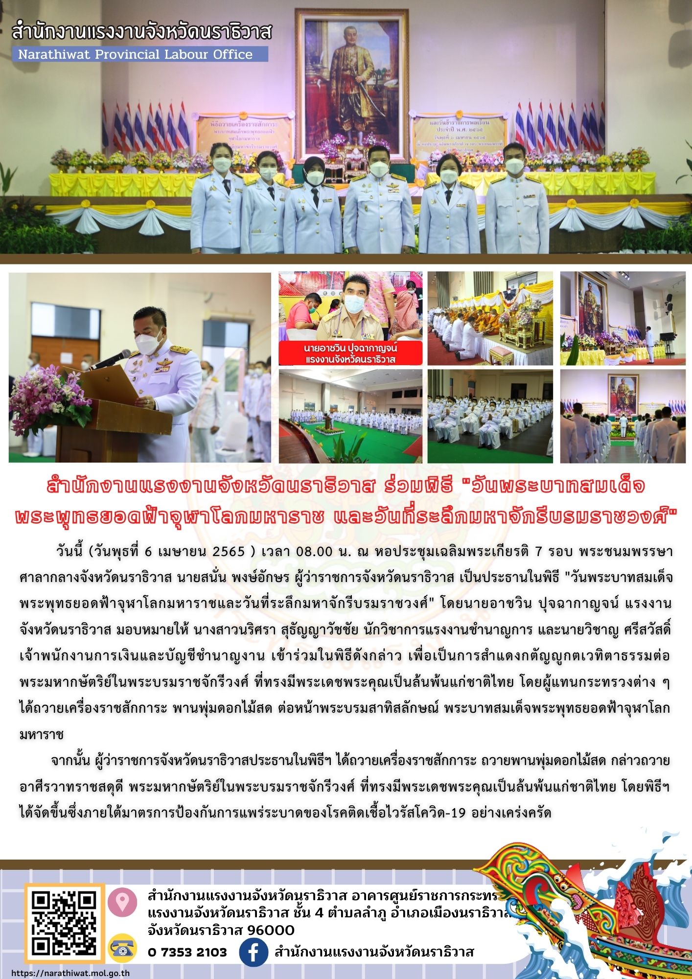 สำนักงานแรงงานจังหวัดนราธิวาส ร่วมพิธี “วันพระบาทสมเด็จ พระพุทธยอดฟ้าจุฬาโลกมหาราช และวันที่ระลึกมหาจักรีบรมราชวงศ์”
