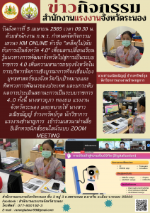 สำนักงานแรงงานร่วมกิจกรรมเสวนา KM ONLINE หัวข้อ “เคล็ด(ไม่)ลับกับการเป็นจังหวัด 4.0”