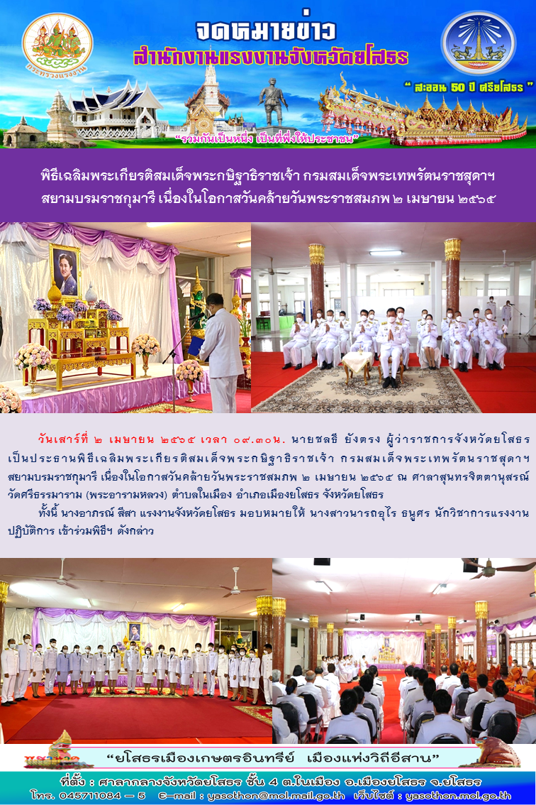 สรจ.ยโสธร ร่วมพิธีเฉลิมพระเกียรติสมเด็จพระกษิฐาธิราชเจ้า กรมสมเด็จพระเทพรัตนราชสุดาฯสยามบรมราชกุมารี