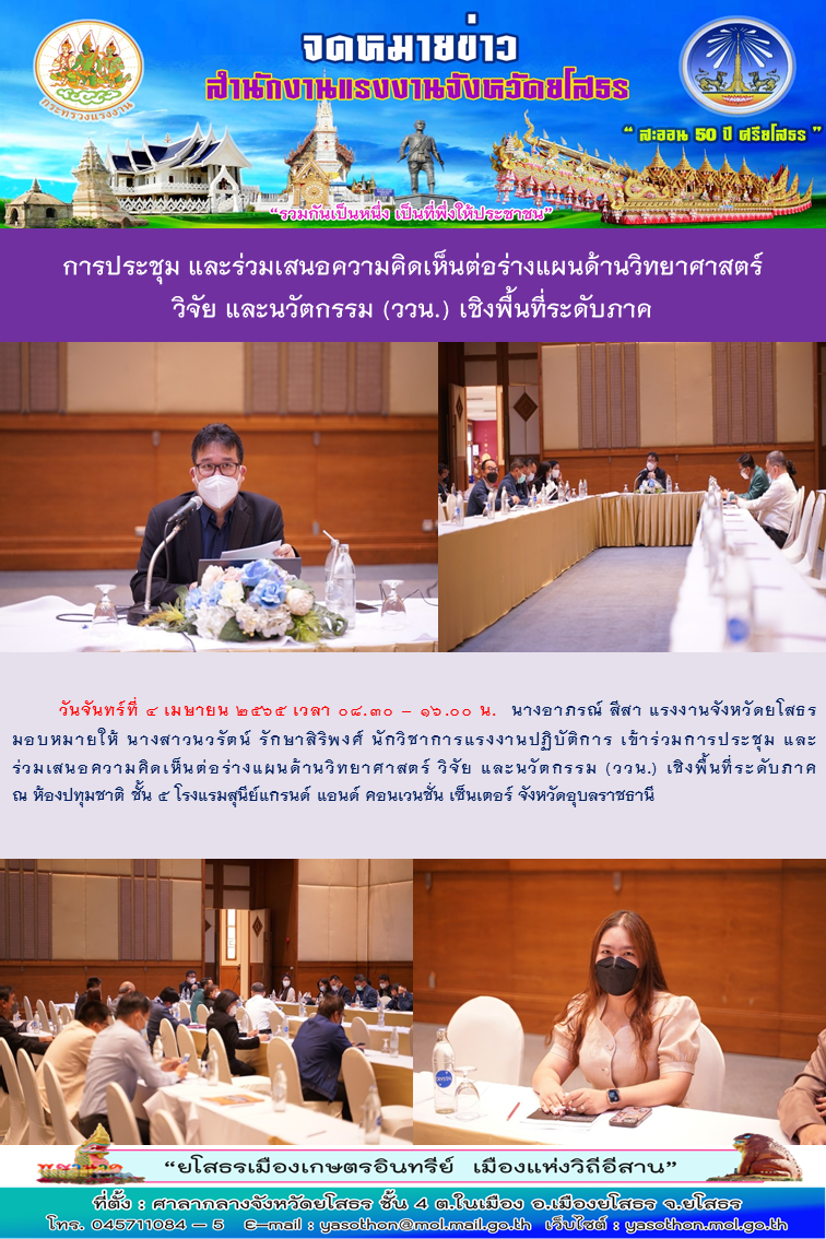 สรจ.ยโสธร ร่วมประชุมและร่วมเสนอความคิดเห็นต่อร่างแผนด้านวิทยาศาสตร์ วิจัย และนวัตกรรม (ววน.) เชิงพื้นที่ระดับภาค
