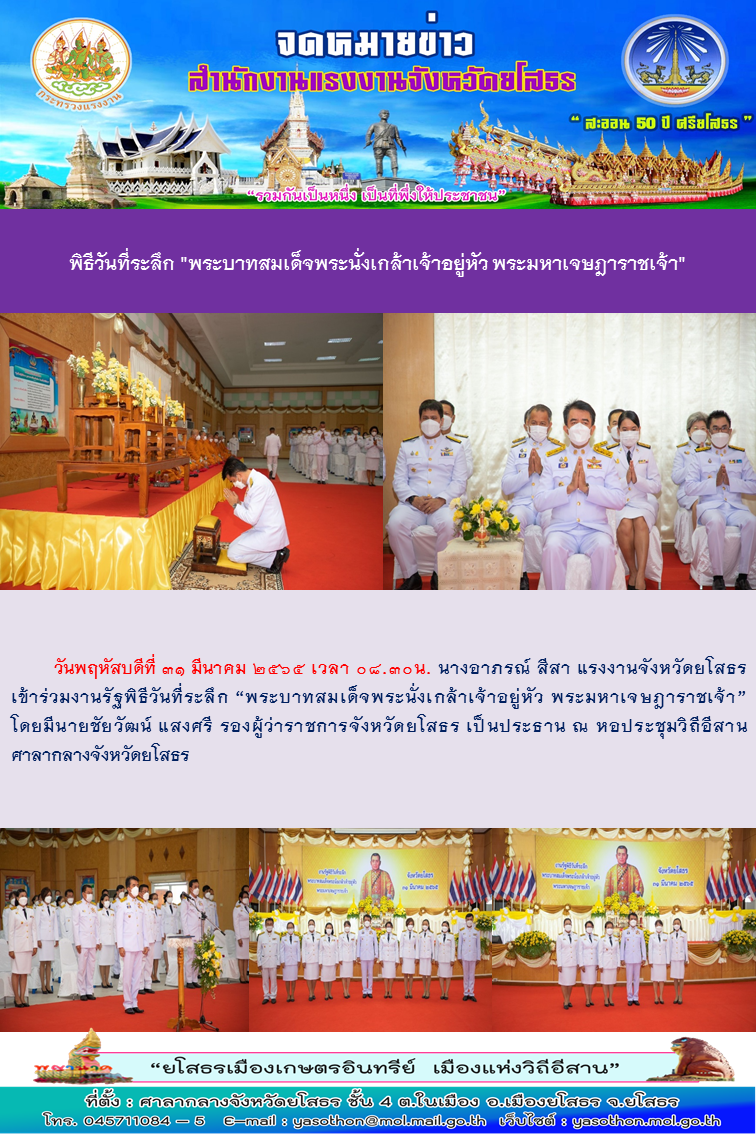 สรจ.ยโสธร ร่วมพิธีวันที่ระลึก “พระบาทสมเด็จพระนั่งเกล้าเจ้าอยู่หัว พระมหาเจษฎาราชเจ้า”