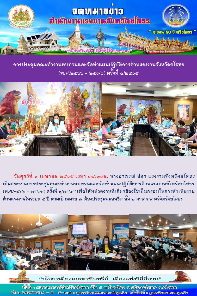 การประชุมคณะทำงานทบทวนและจัดทำแผนปฏิบัติการด้านแรงงานจังหวัดยโสธร (พ.ศ.2566-2570) ครั้งที่ 1/2565๕
