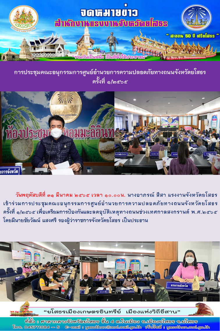 การประชุมคณะอนุกรรมการศูนย์อำนวยการความปลอดภัยทางถนนจังหวัดยโสธร ครั้งที่ 1/2565