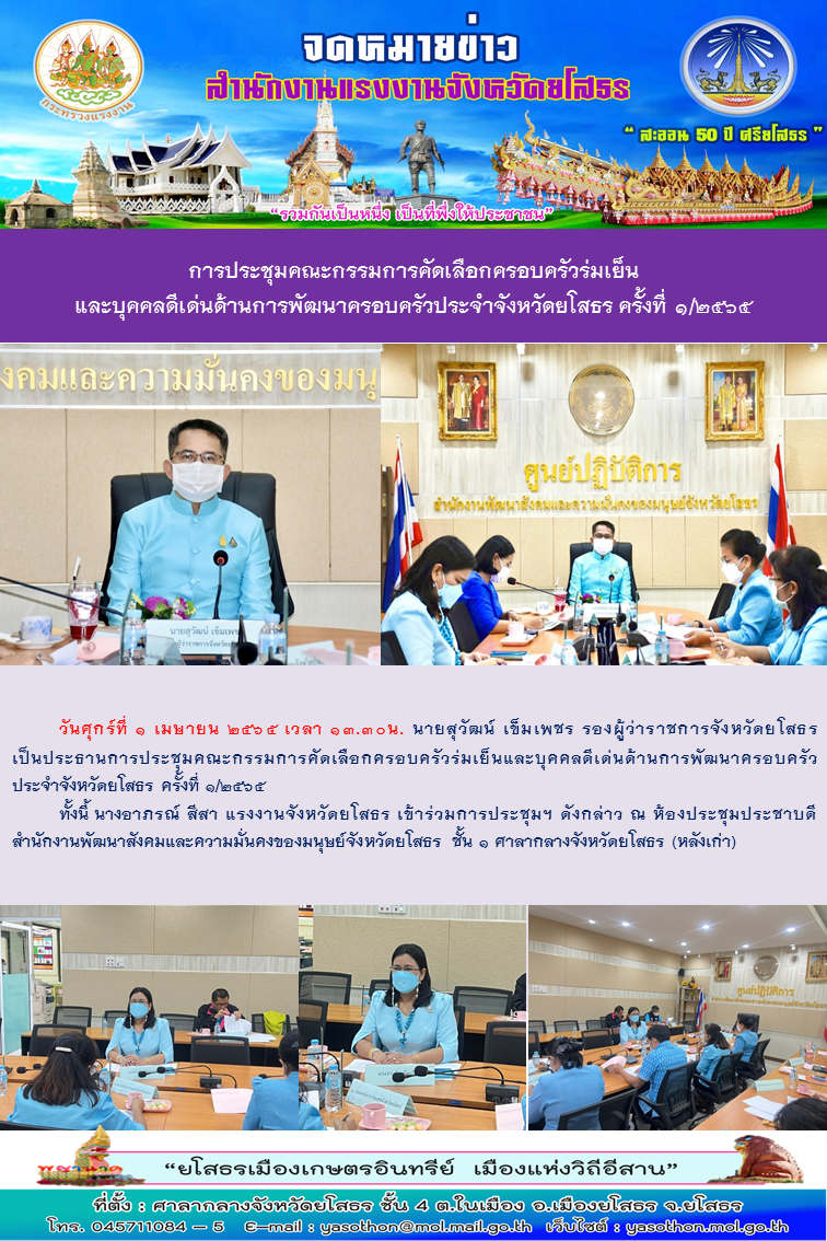 การประชุมคณะกรรมการคัดเลือกครอบครัวร่มเย็นและบุคคลดีเด่นด้านการพัฒนาครอบครัวประจำจังหวัดยโสธร ครั้งที่ 1/2565