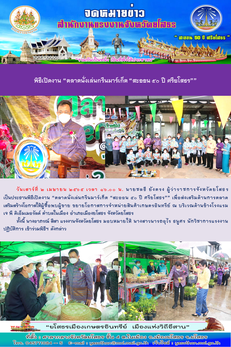 พิธีเปิดงาน “ตลาดนั่งเล่นกรีนมาร์เก็ต “สะออน 50 ปี ศรียโสธร””