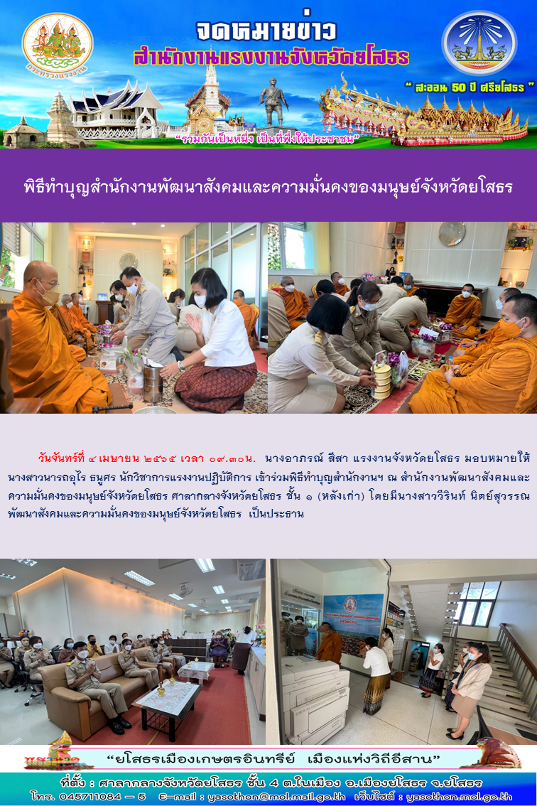 พิธีทำบุญสำนักงานพัฒนาสังคมและความมั่นคงของมนุษย์จังหวัดยโสธร