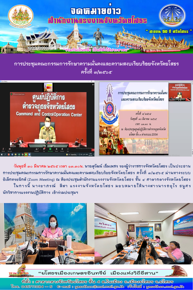 การประชุมคณะกรรมการรักษาความมั่นคงและความสงบเรียบร้อยจังหวัดยโสธร ครั้งที่ 3/2565