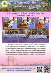 แรงงานจังหวัดตาก เข้าร่วมพิธีรับพระราชทานเครื่องราชอิสริยาภรณ์ ชั้นสายสะพาย ประจำปี 2564