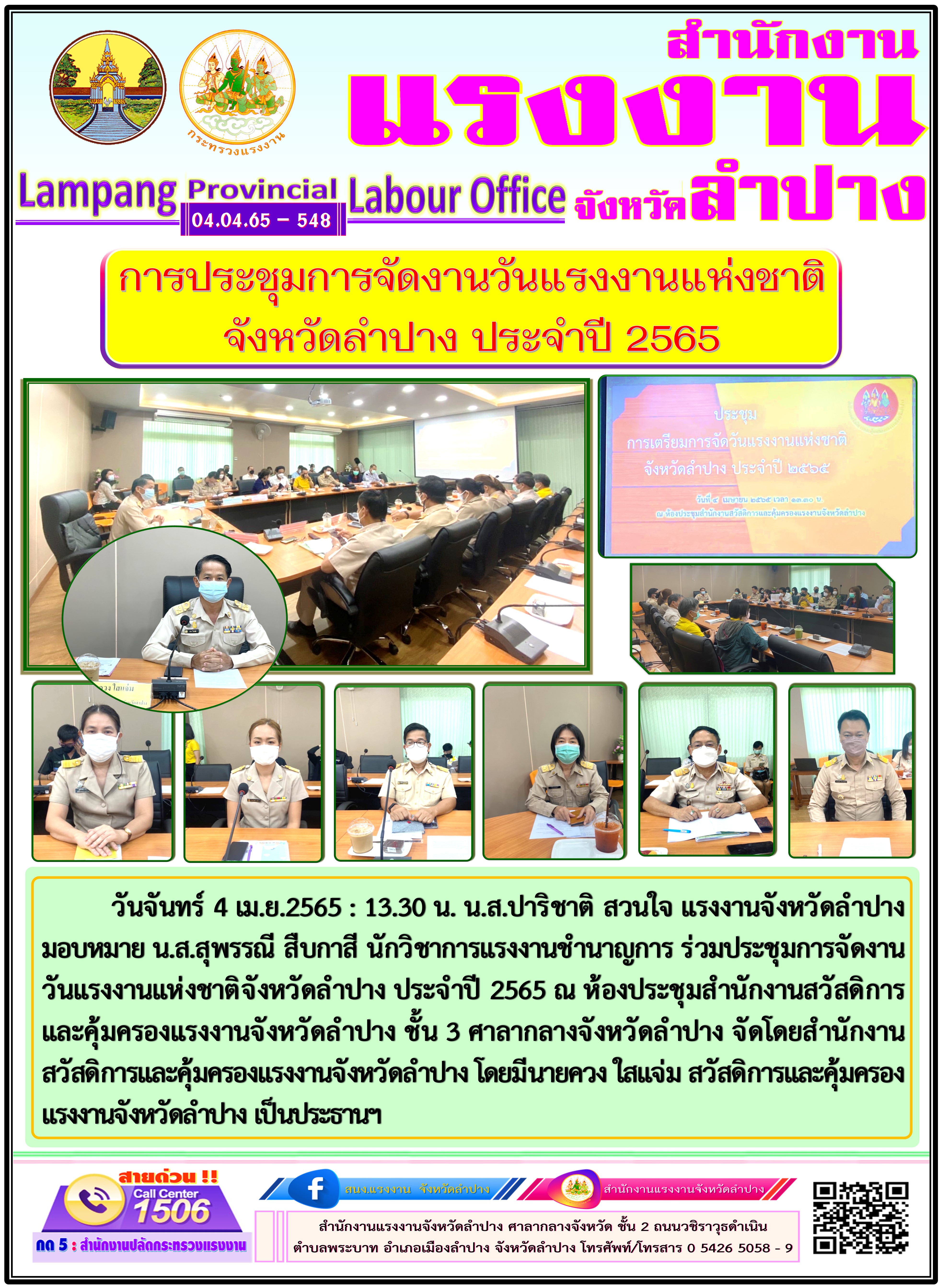 ร่วมประชุมการจัดงานวันแรงงานแห่งชาติจังหวัดลำปาง ประจำปี 2565