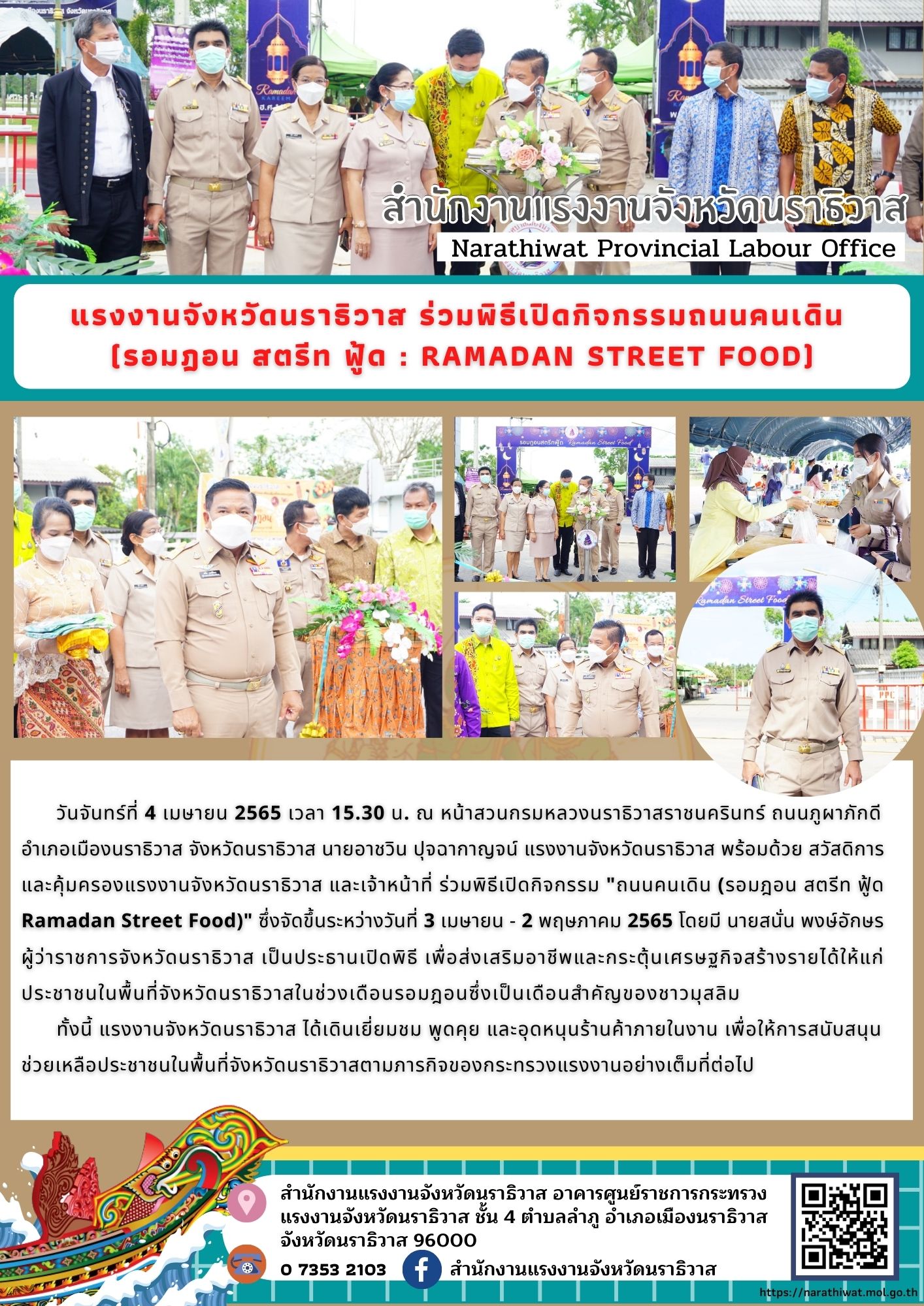 แรงงานจังหวัดนราธิวาส ร่วมพิธีเปิดกิจกรรมถนนคนเดิน (รอมฎอน สตรีท ฟู้ด : Ramadan Street Food)
