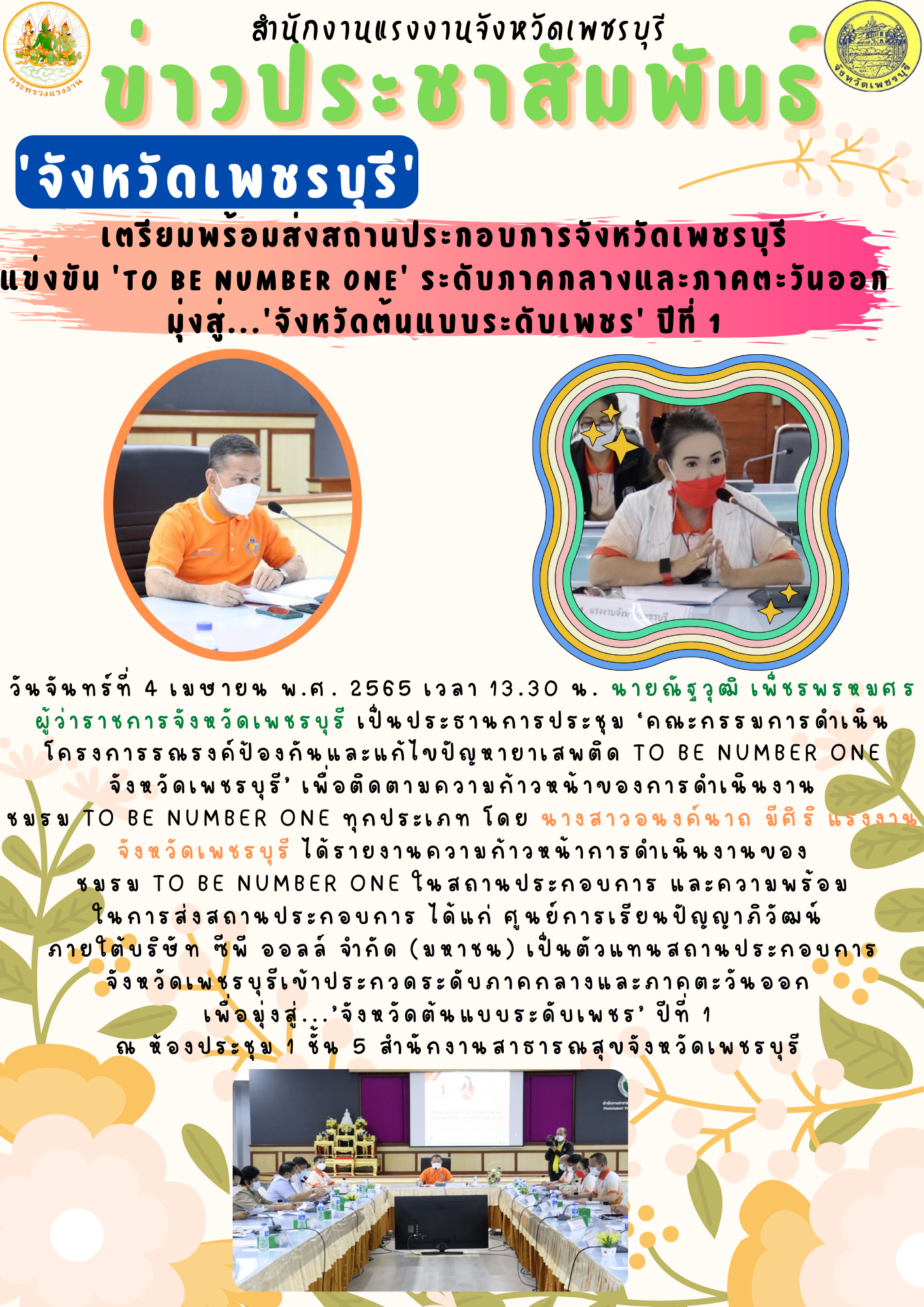 ‘จังหวัดเพชรบุรี’ เตรียมพร้อมส่งสถานประกอบการจังหวัดเพชรบุรี แข่งขัน ‘TO BE NUMBER ONE’ ระดับภาคกลางและภาคตะวันออก มุ่งสู่…’จังหวัดต้นแบบระดับเพชร’ ปีที่ 1