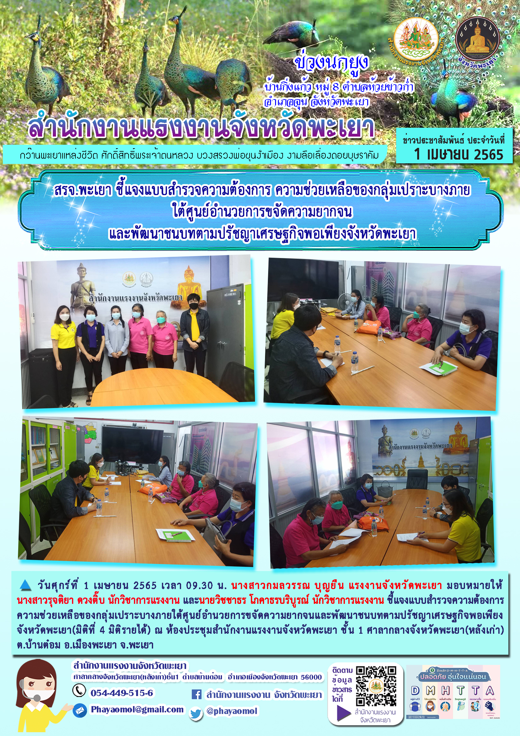สรจ.พะเยา ชี้แจงแบบสำรวจความต้องการ ความช่วยเหลือของกลุ่มเปราะบางภายใต้ศูนย์อำนวยการขจัดความยากจนและพัฒนาชนบทตามปรัชญาเศรษฐกิจพอเพียงจังหวัดพะเยา
