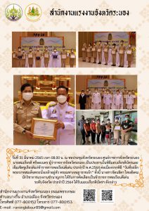 สรจ.ระนอง ร่วมพิธีมอบเกียรติบัตรและเข็มเชิดชูเกียรติแก่ข้าราชการพลเรือนดีเด่น ประจำปี พ.ศ.2564