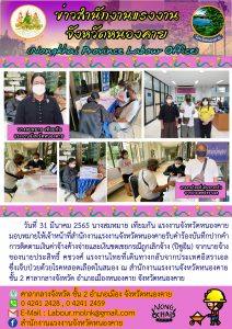 แรงงานจังหวัดหนองคาย มอบหมายให้เจ้าหน้าที่สำนักงานแรงงานจังหวัดหนองคายรับคำร้องบันทึกปากคำการติดตามเงินค่าจ้างค้างจ่ายและเงินชดเชยกรณีถูกเลิกจ้าง (ปิซูอิม)
