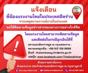 แจ้งเตือน พี่น้องแรงงานไทยในประเทศอิหร่าน