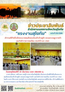 แรงงานจังหวัดสุโขทัย เข้าร่วมพิธีวันที่ระลึกพระบาทสมเด็จพระนั่งเกล้าเจ้าอยู่หัว พระมหาเจษฐาราชเจ้า และวันข้าราชการพลเรือน ประจำปี พ.ศ. 2565