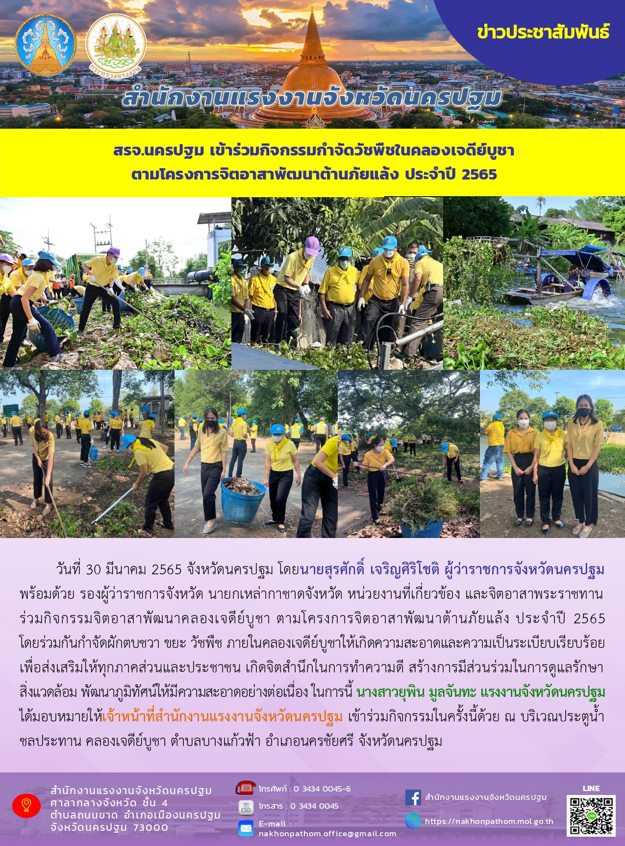 สรจ.นครปฐม เข้าร่วมกิจกรรมกำจัดวัชพืชในคลองเจดีย์บูชา ตามโครงการจิตอาสาพัฒนาต้านภัยแล้ง ประจำปี 2565