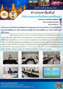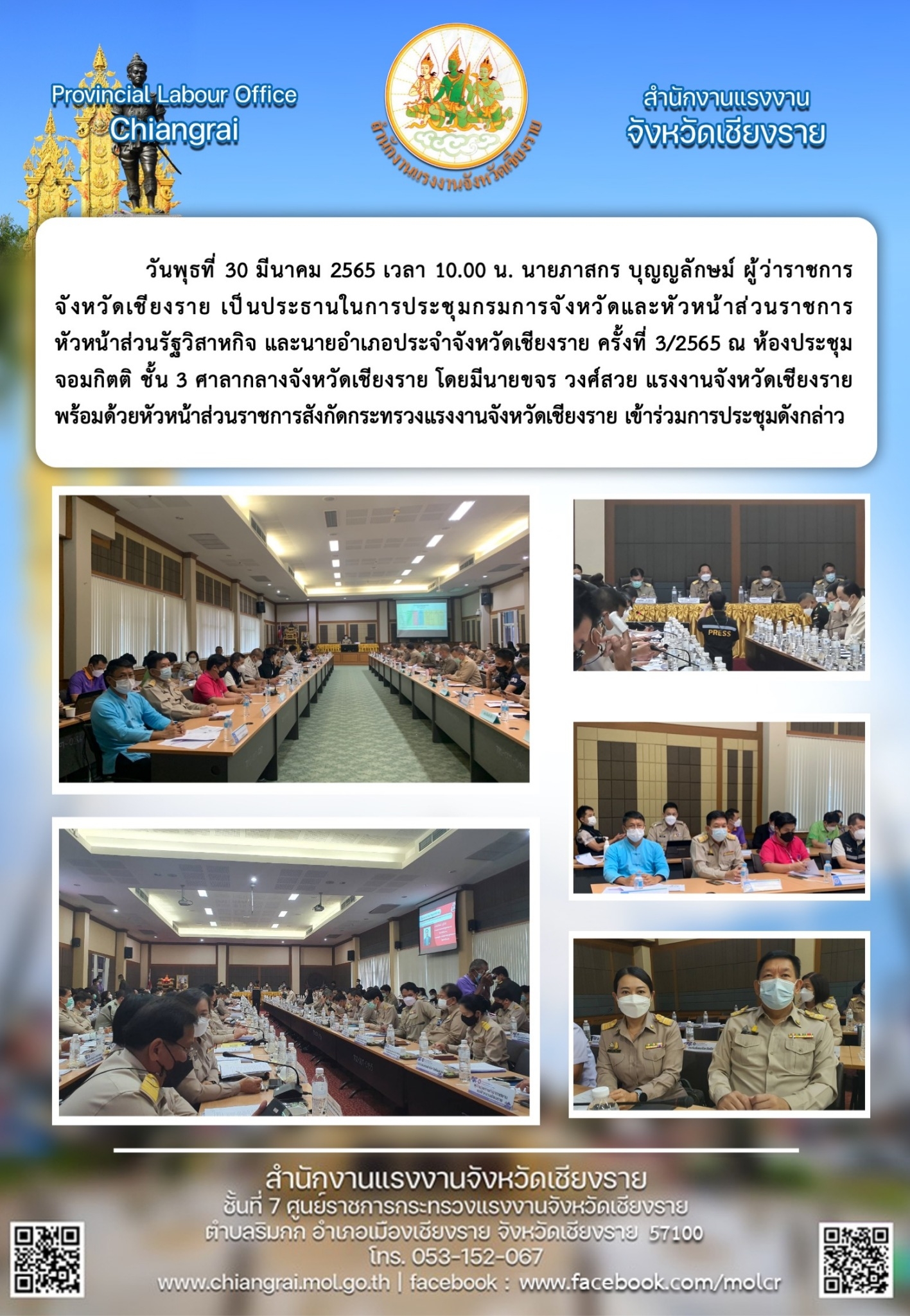 แรงงานจังหวัดพระนครศรีอยุธยาร่วมประชุมกรมการจังหวัด และหัวหน้าส่วน ราชการจังหวัดพระนครศรีอยุธยา ประจำเดือนมีนาคม 2565