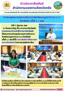 แรงงานจังหวัดตรัง ร่วมการประชุมคณะกรรมการบริหารงานจังหวัดแบบบูรณาการ (ก.บ.จ.) จังหวัดตรัง ครั้งที่ 2/2568