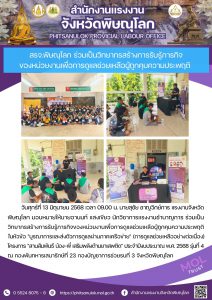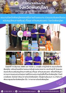 แรงงานจังหวัดพิษณุโลกและเครือข่ายด้านเเรงงาน ร่วมมอบเงินและสิ่งของสนับสนุนโครงการเคียงคู่ เกื้อกูล แก้จนคนสองแคว จังหวัดพิษณุโลก