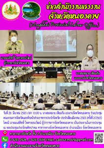 แรงงานจังหวัดหนองคาย ร่วมประชุมคณะกรมการจังหวัดและหัวหน้าส่วนราชการประจำจังหวัด ประจำเดือนมีนาคม 2565 (ครั้งที่ 2/2565)
