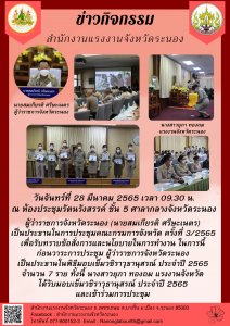 การประชุมหัวหน้าส่วนราชการสังกัดกระทรวงแรงงานจังหวัดนราธิวาส ประจำเดือนมีนาคม 2565