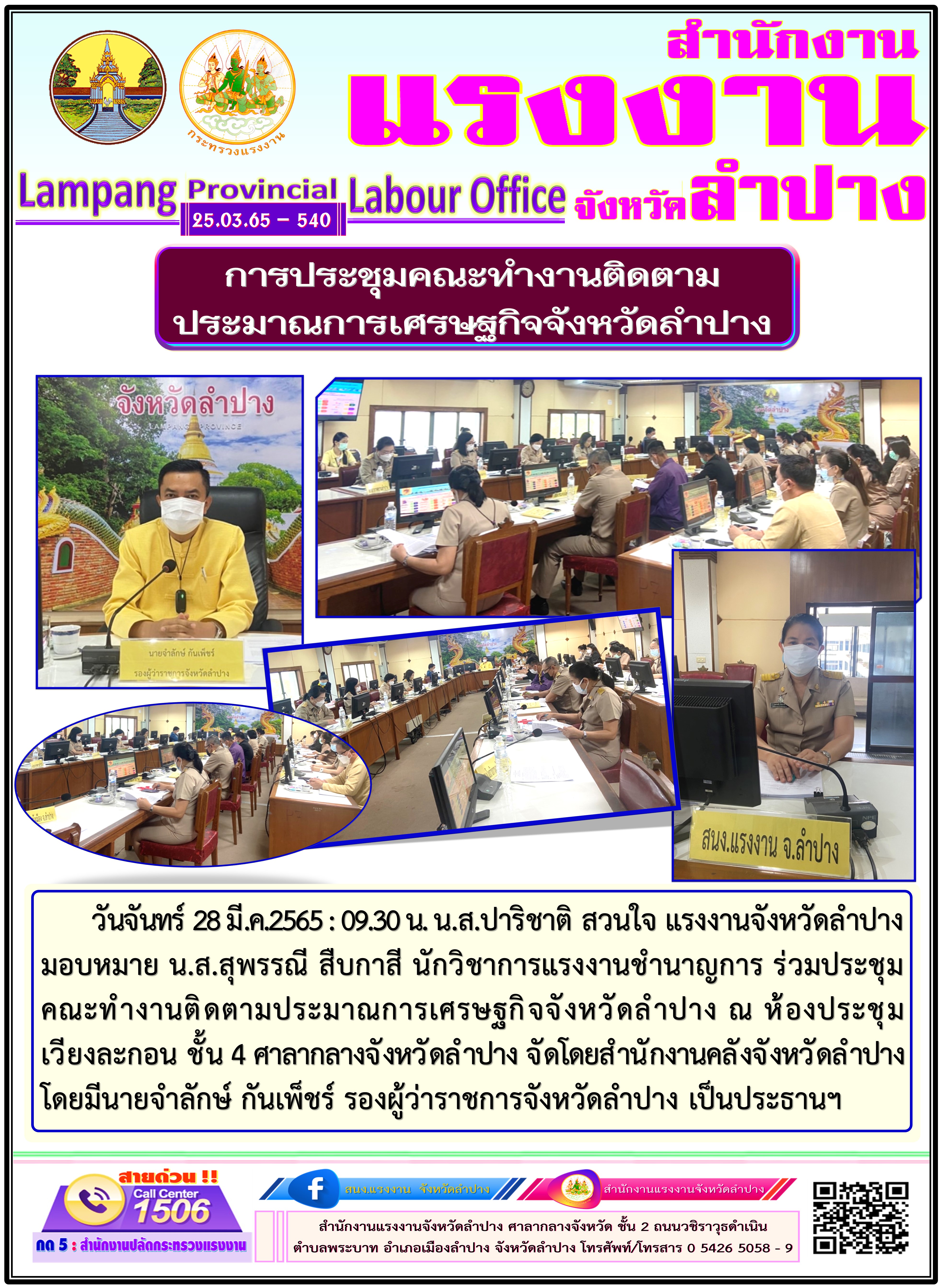 สรจ.ลำปาง ร่วมประชุมคณะทำงานติดตามประมาณการเศรษฐกิจจังหวัดลำปาง