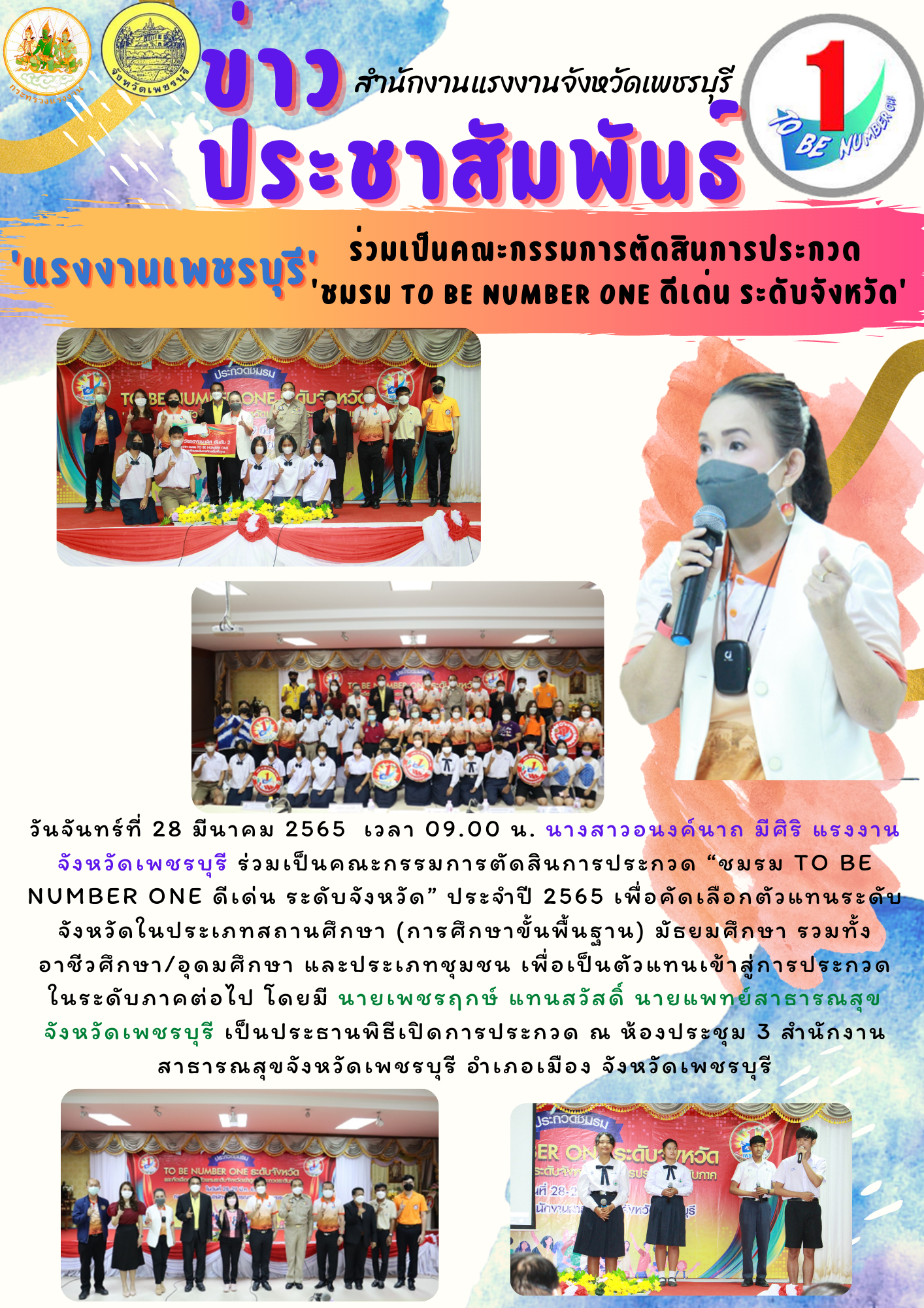 ‘แรงงานเพชรบุรี’ ร่วมเป็นคณะกรรมการตัดสินการประกวด ‘ชมรม TO BE NUMBER ONE ดีเด่น ระดับจังหวัด’