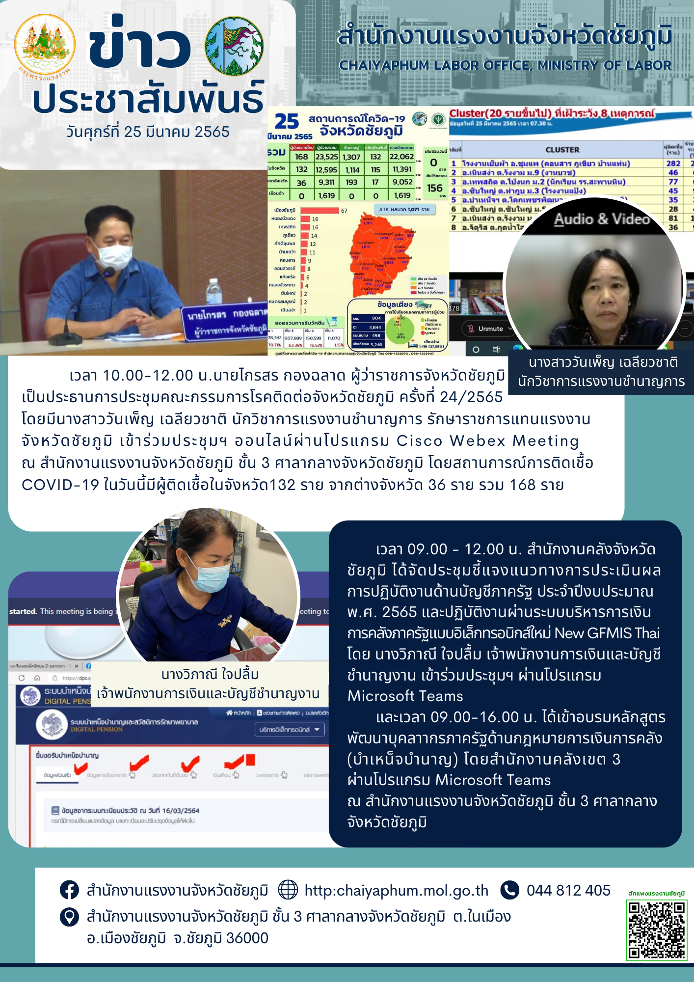 ภารกิจสำนักงานแรงงานจังหวัดชัยภูมิ ประจำวันที่ 25 มีนาคม 2565
