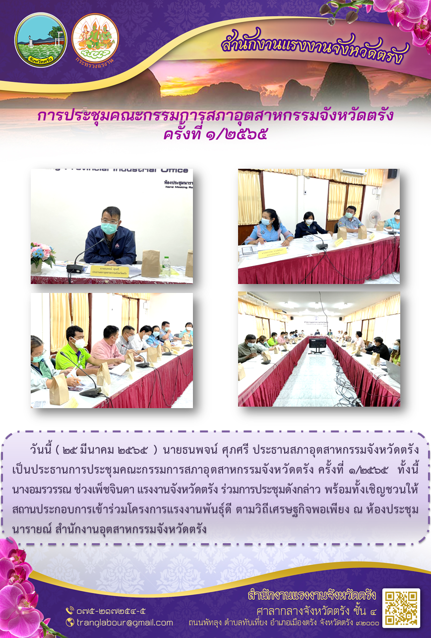 แรงงานจังหวัดตรัง ร่วมการประชุมคณะกรรมการสภาอุตสาหกรรมจังหวัดตรัง ครั้งที่ ๑/๒๕๖๕