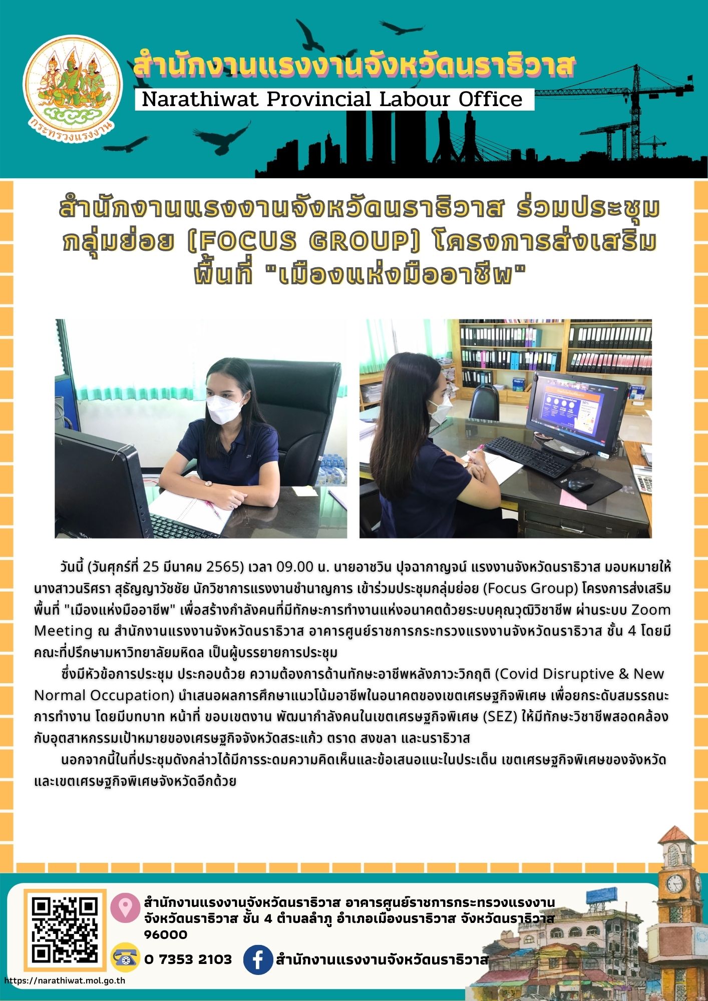 สำนักงานแรงงานจังหวัดนราธิวาส ร่วมประชุมกลุ่มย่อย (Focus Group) โครงการส่งเสริมพื้นที่ “เมืองแห่งมืออาชีพ”