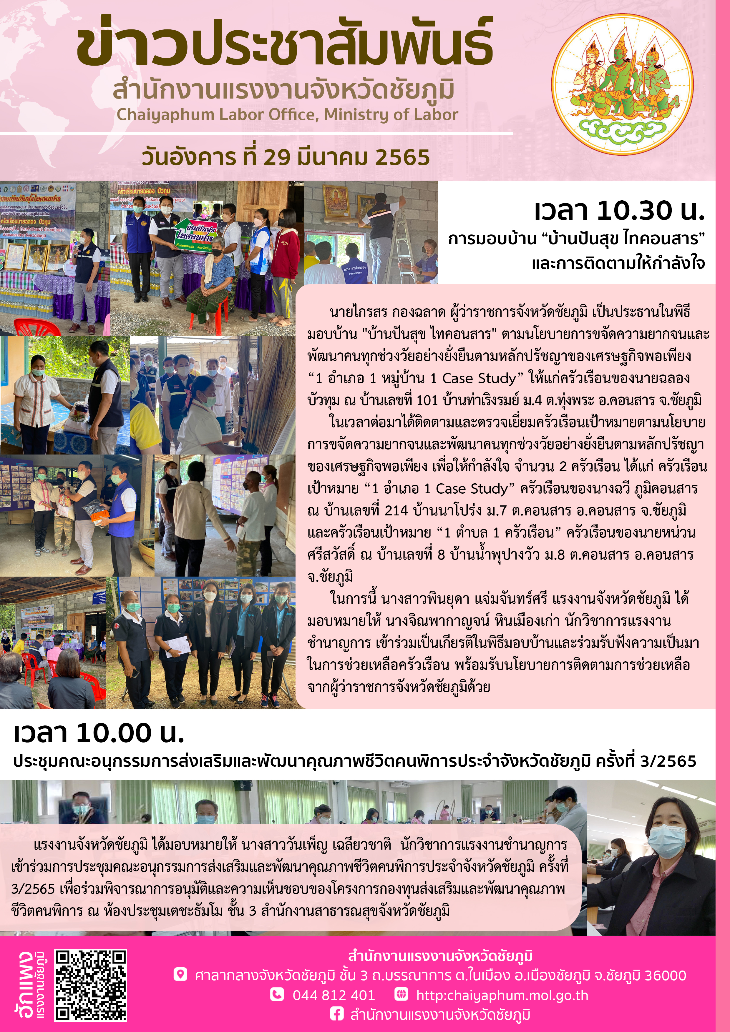ภารกิจสำนักงานแรงงานจังหวัดชัยภูมิ ประจำวันที่ 29 มีนาคม 2565