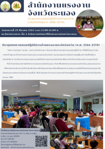 สรจ.ระนอง ร่วมประชุมทบทวนแผนปฏิบัติการด้านแรงงานระดับจังหวัด (พ.ศ. 2566-2570)