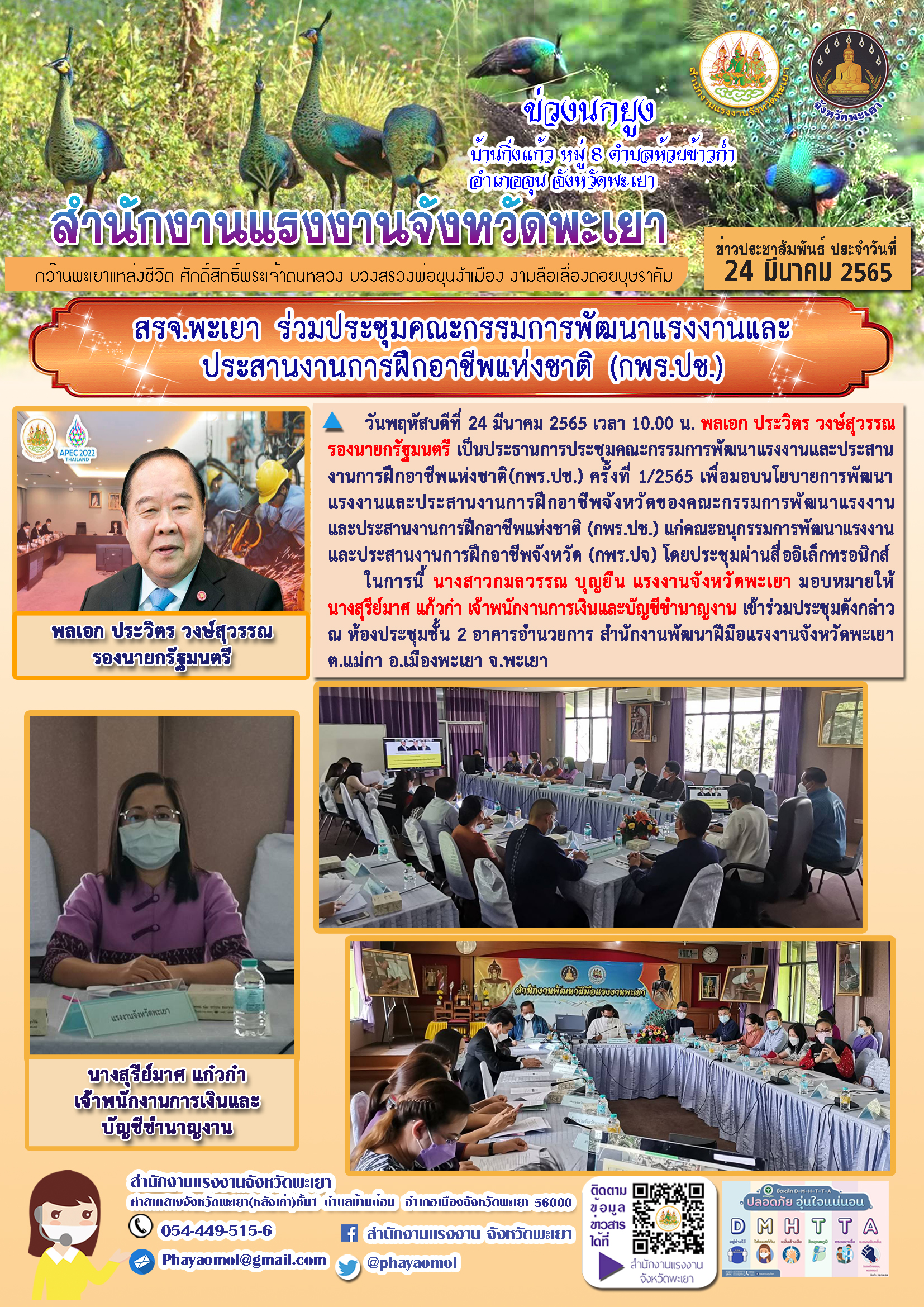 สรจ.พะเยา ร่วมประชุมคณะกรรมการพัฒนาแรงงานและประสานงานการฝึกอาชีพแห่งชาติ (กพร.ปช.)
