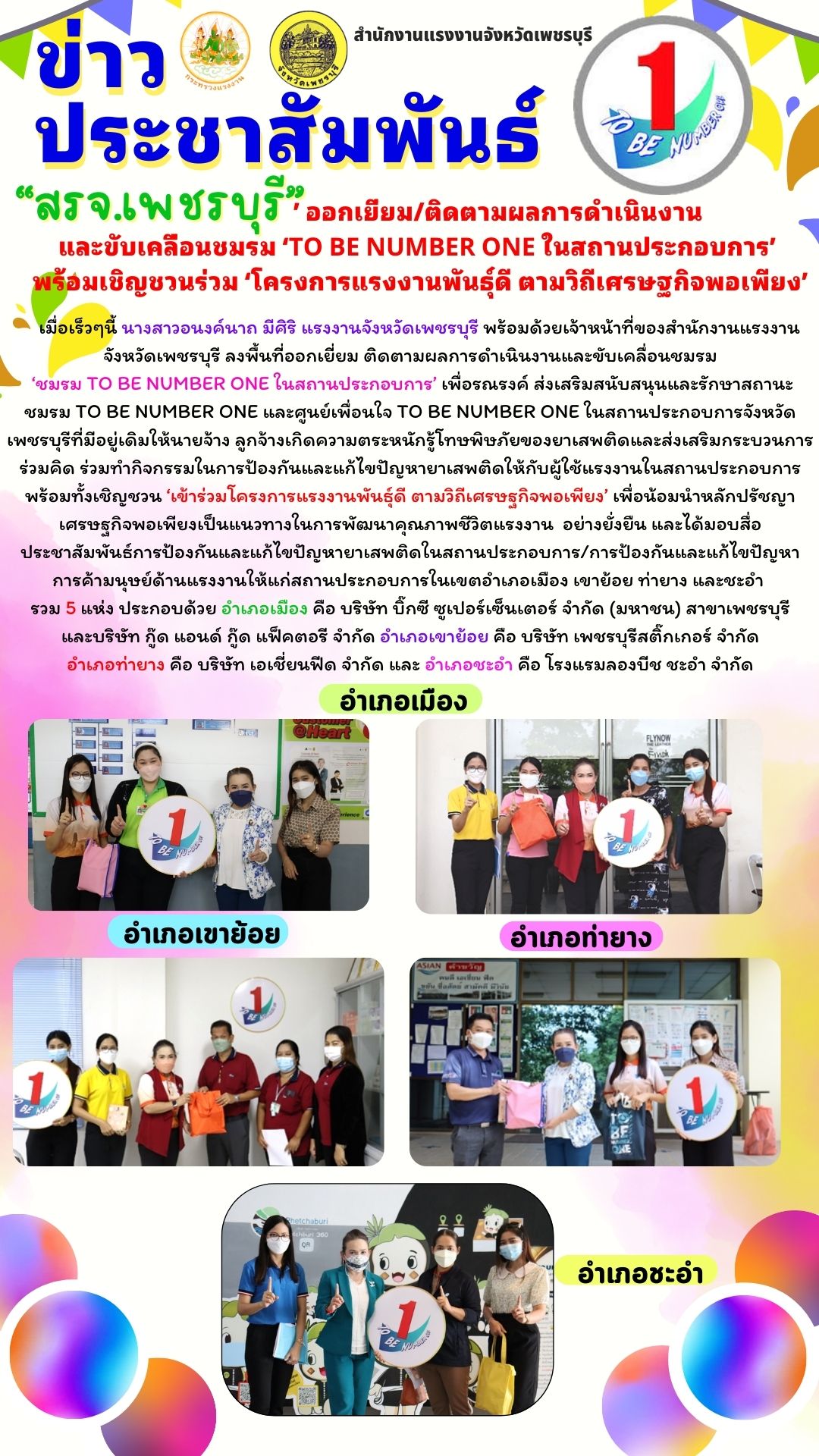 ‘สรจ.เพชรบุรี’ ออกเยี่ยม/ติดตามผลการดำเนินงาน และขับเคลื่อนชมรม ‘TO BE NUMBER ONE ในสถานประกอบการ’ พร้อมเชิญชวนร่วม ‘โครงการแรงงานพันธุ์ดี ตามวิถีเศรษฐกิจพอเพียง’