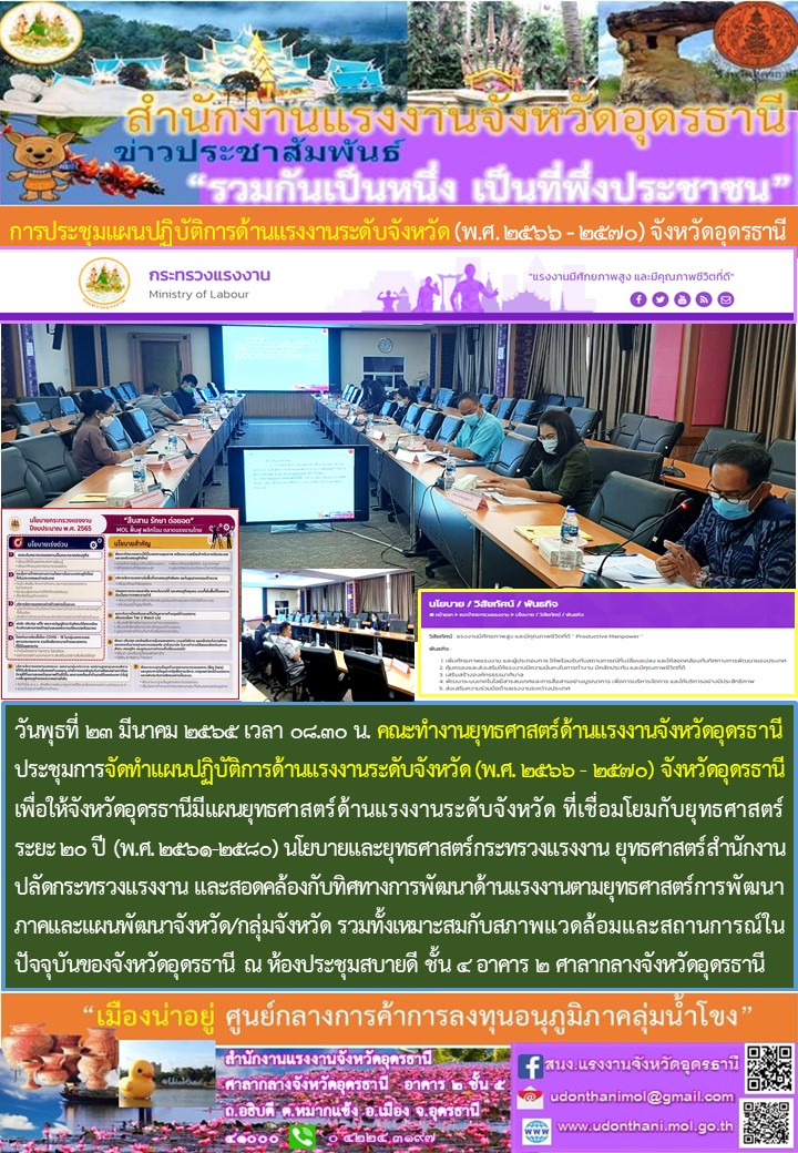 การประชุมแผนปฏิบัติการด้านแรงงานระดับจังหวัด (พ.ศ. 2566-2570) จังหวัดอุดรธานี