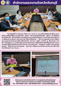 แรงงานจังหวัดจันทบุรี ร่วมประชุมรับมอบนโยบาย การพัฒนาแรงงานและการประสานงานการฝึกอาชีพจังหวัด ในการประชุมคณะกรรมการพัฒนาแรงงานและประสานงานการฝึกอาชีพแห่งชาติ (กพร.ปช.) ครั้งที่ 1/2565