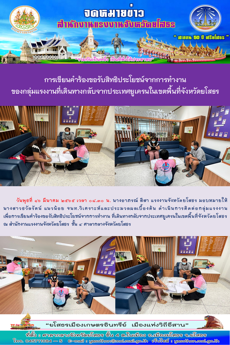 การเขียนคำร้องขอรับสิทธิประโยชน์จากการทำงานของกลุ่มแรงงานที่เดินทางกลับจากประเทศยูเครนในเขตพื้นที่จังหวัดยโสธร