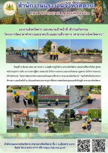 แรงงานจังหวัดตาก มอบหมายเจ้าหน้าที่ เข้าร่วมกิจกรรม “โครงการจิตอาสาทำความสะอาดบริเวณสถานที่ราชการ (ศาลากลางจังหวัดตาก)”