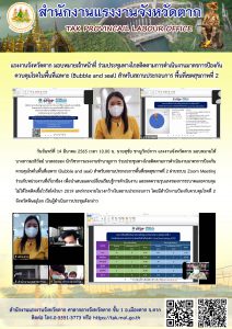 แรงงานจังหวัดตาก มอบหมายเจ้าหน้าที่ ร่วมประชุมทางไกลติดตามการดำเนินงานมาตรการป้องกันควบคุมโรคในพื้นที่เฉพาะ (Bubble and seal) สำหรับสถานประกอบการ พื้นที่เขตสุขภาพที่ 2