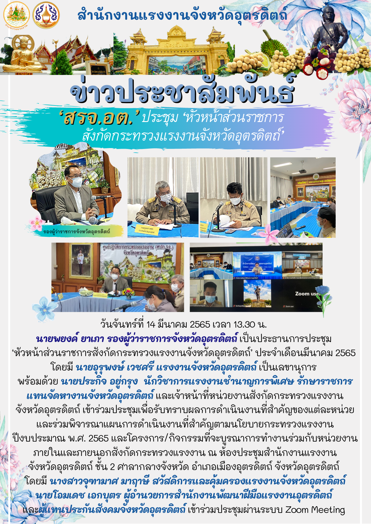 สรจ.อต. ประชุม ‘หัวหน้าส่วนราชการสังกัดกระทรวงแรงงานจังหวัดอุตรดิตถ์’ ประจำเดือนมีนาคม 2565
