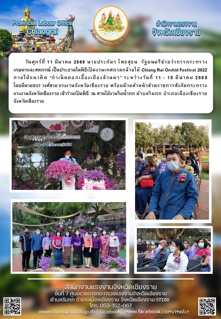 แรงงานจังหวัดเชียงราย ร่วมเปิดงานเทศกาลกล้วยไม้ Chiang Rai Orchid Festival 2022