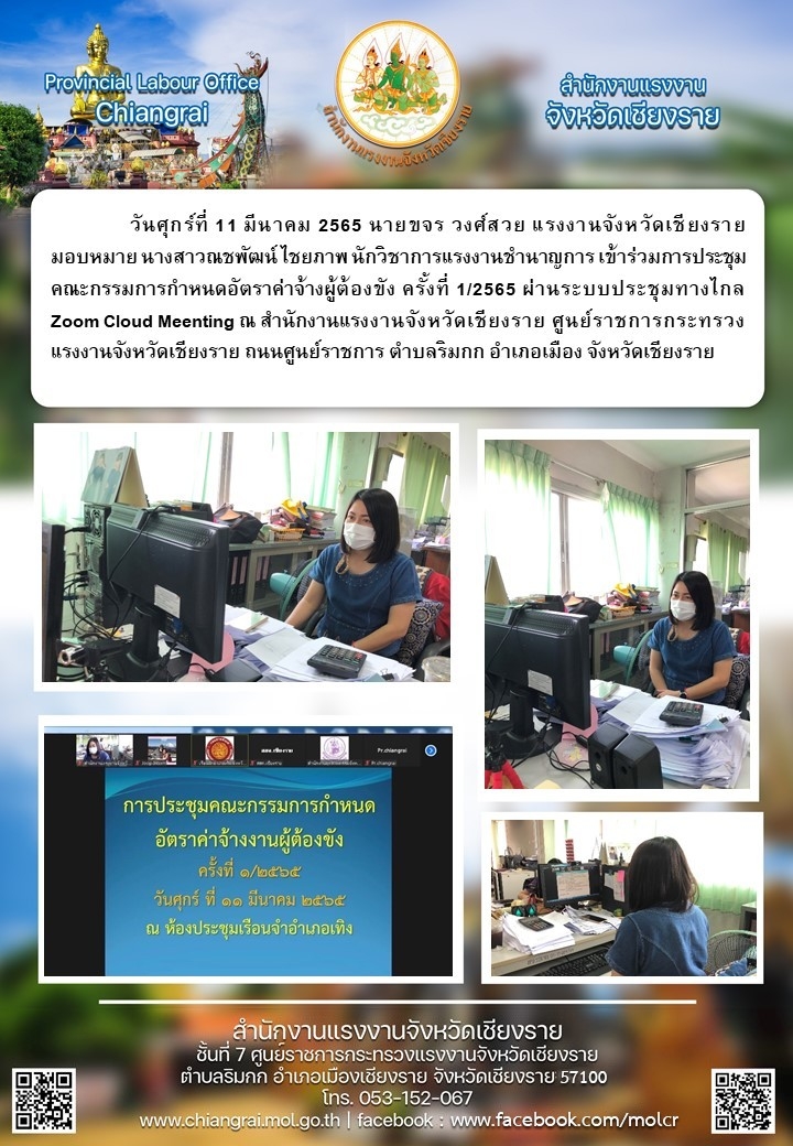 สรจ.ชร เข้าร่วมประชุมคณะกรรมการกำหนดอัตราค่าจ้างผู้ต้องขัง ครั้งที่ 1/2565 ผ่าน ZOOM